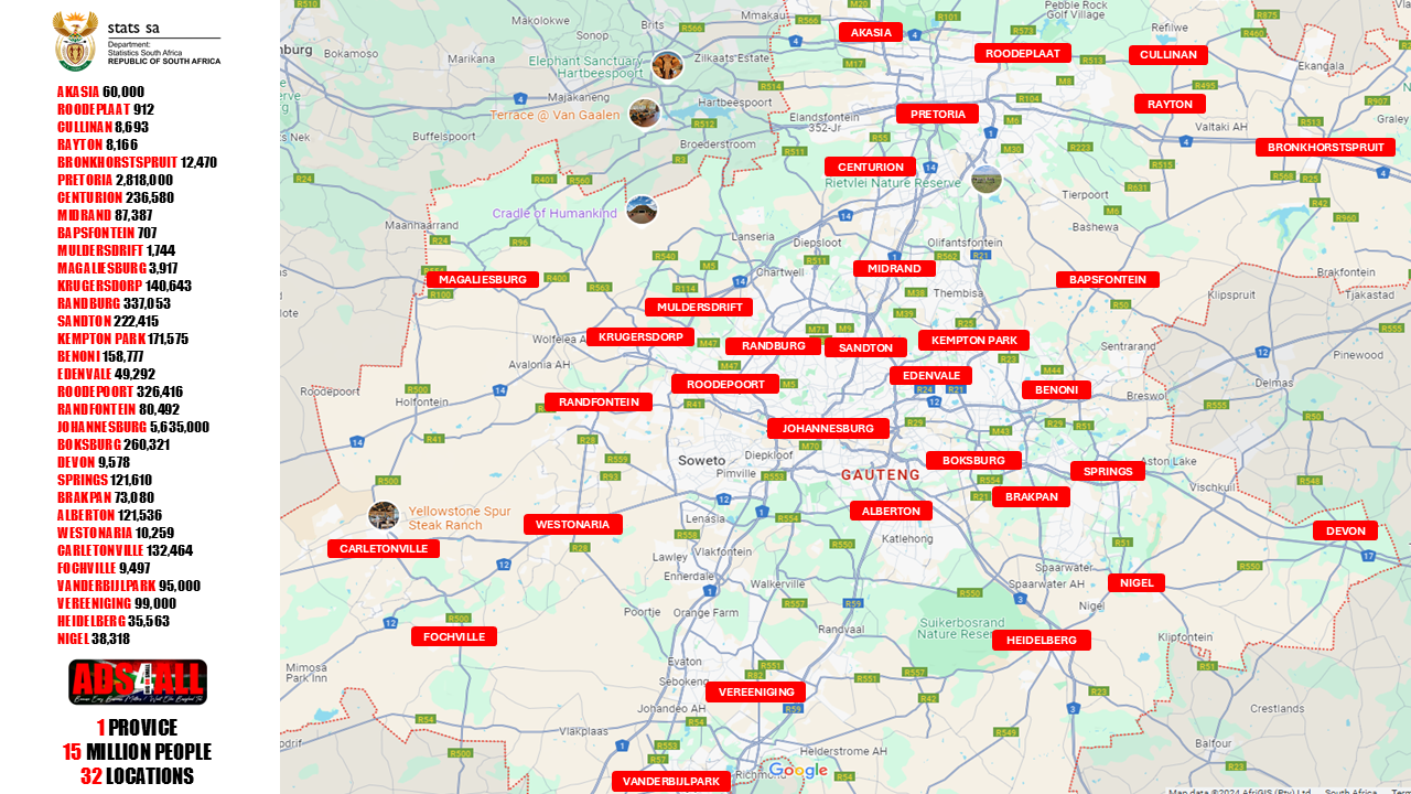 Ads4All Digital Advertiser Will Be Available For Download On Our Webiste & Will Be Distributed Via E-mail Personally To More Than 500 Local Businesses In Gauteng Region. All Adverts Will Be Uploaded To Our Facebook Page & Shared To All Gauteng Groups Reaching More Than 15 Million People Each Month!!